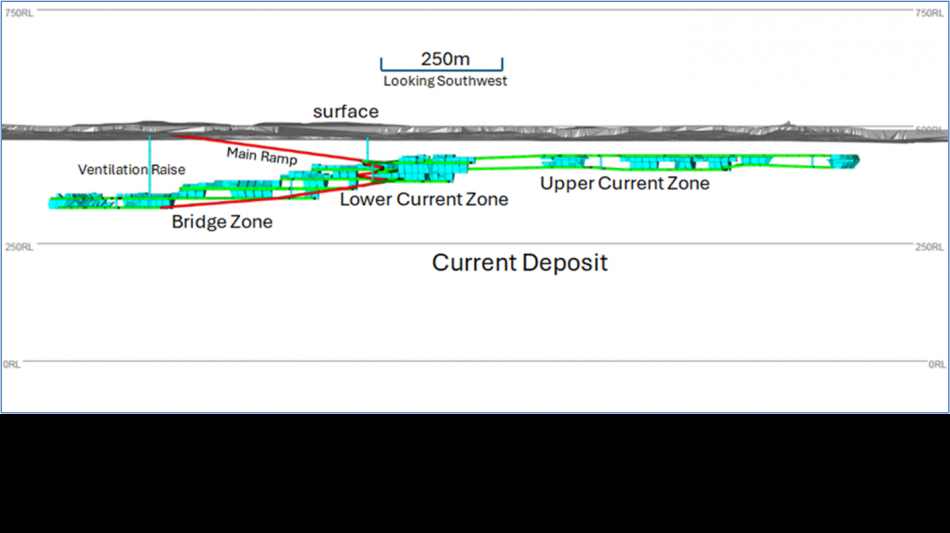 Figure 1: Current Deposit Long Section (Facing South-West)